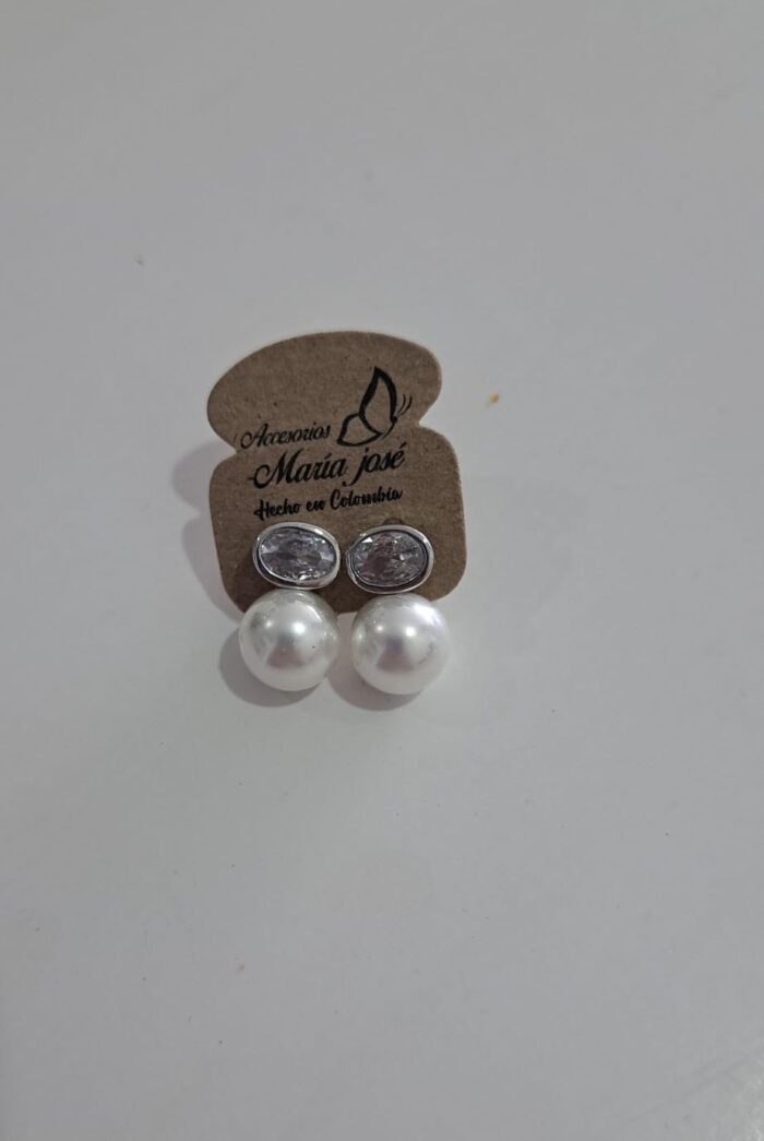 Exclusivo Diseño en Rodio de Aretes en Perlas Blancas y Piedras. No usar lociones o químicos sobre los accesorios, podría modificar su color. No forzar los broches. Guardar en un lugar seco. No usar paños limpiadores de joyas. Se advierte que la durabilidad del producto depende del trato y la intensidad de la transpiración de cada persona.