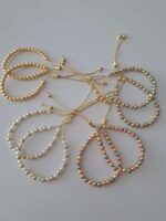 Diversos Diseños de Pulseras balines Medianos en rodio.  No usar lociones o químicos sobre los accesorios, podría modificar su color.  No forzar los hilos.  Guardar en un lugar seco.  No usar paños limpiadores de joyas.  Se advierte que la durabilidad del producto depende del trato y la intensidad de la transpiración de cada persona.